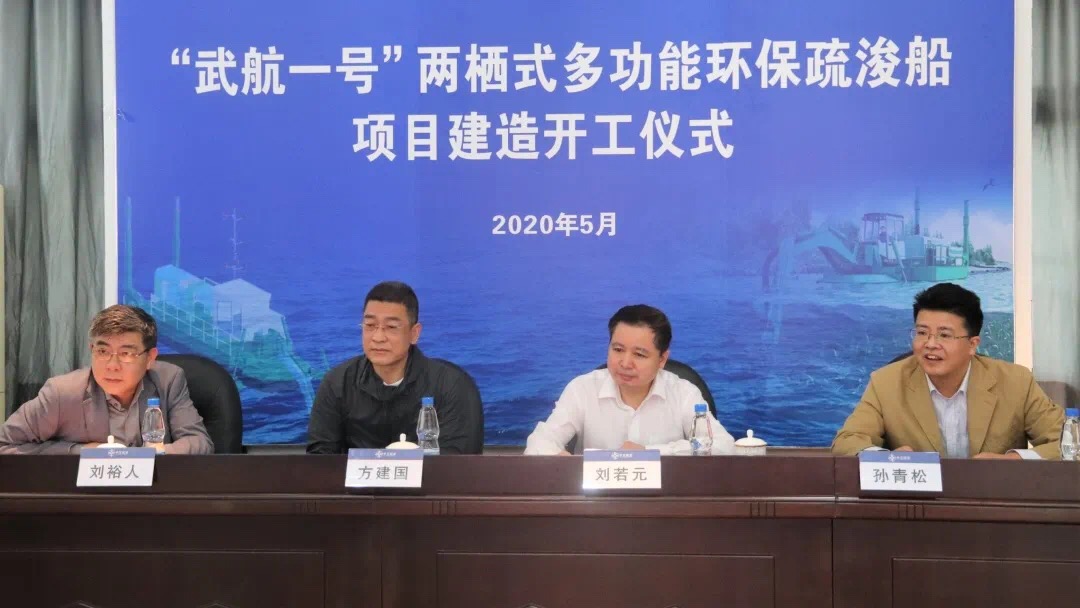 2020年5月10日上午,我公司董事長孫青松出席“武航一號”兩棲式多功能環保疏浚船項目建造的開工儀式。